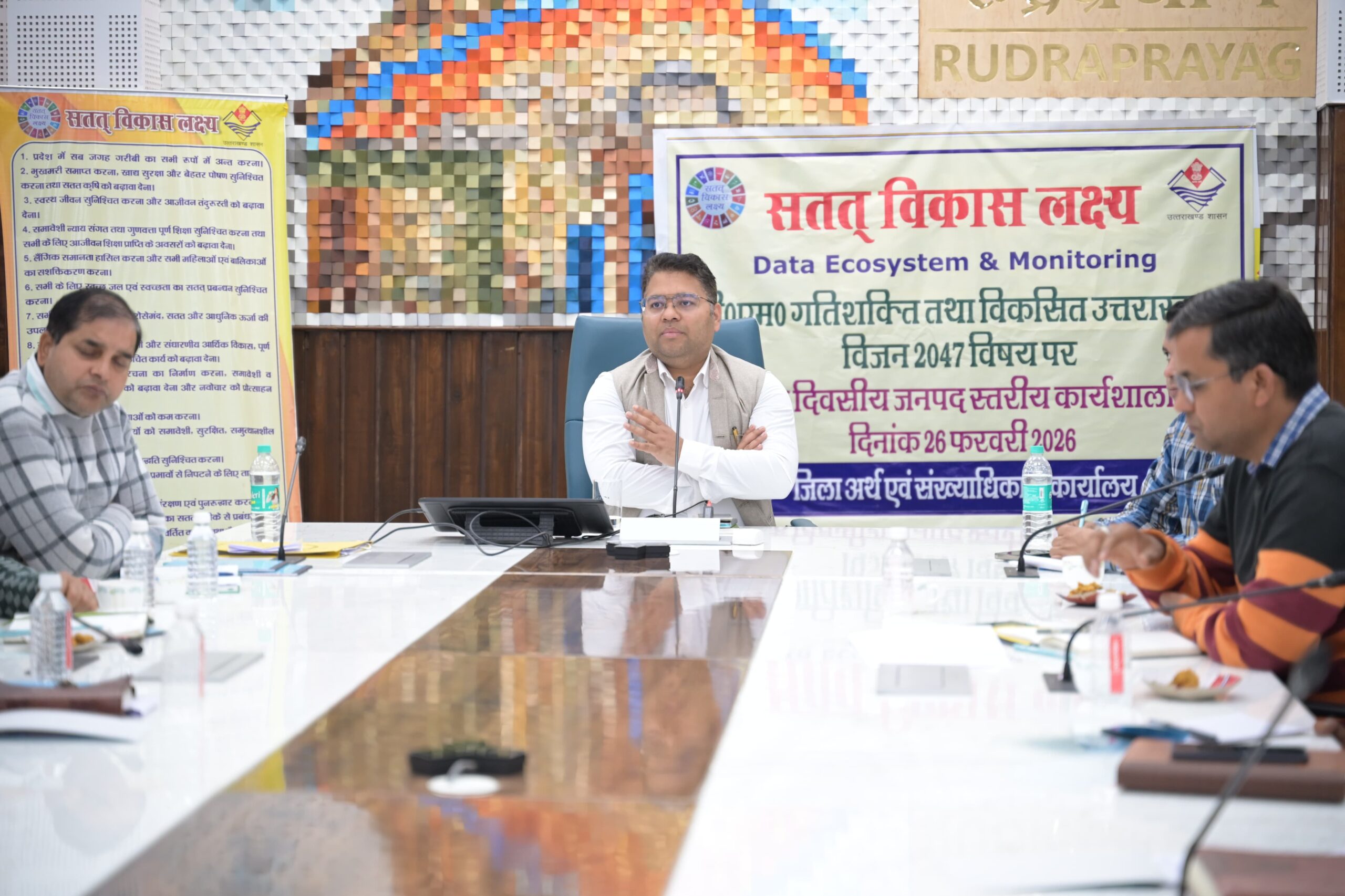 रुद्रप्रयाग जनपद में सतत विकास लक्ष्यों (SDG), पीएम गतिशक्ति एवं विजन-2047 के प्रभावी क्रियान्वयन को लेकर आज कलेक्ट्रेट सभागार में एक दिवसीय जनपद स्तरीय कार्यशाला का आयोजन किया गया। कार्यशाला की अध्यक्षता जिलाधिकारी विशाल मिश्रा ने की।