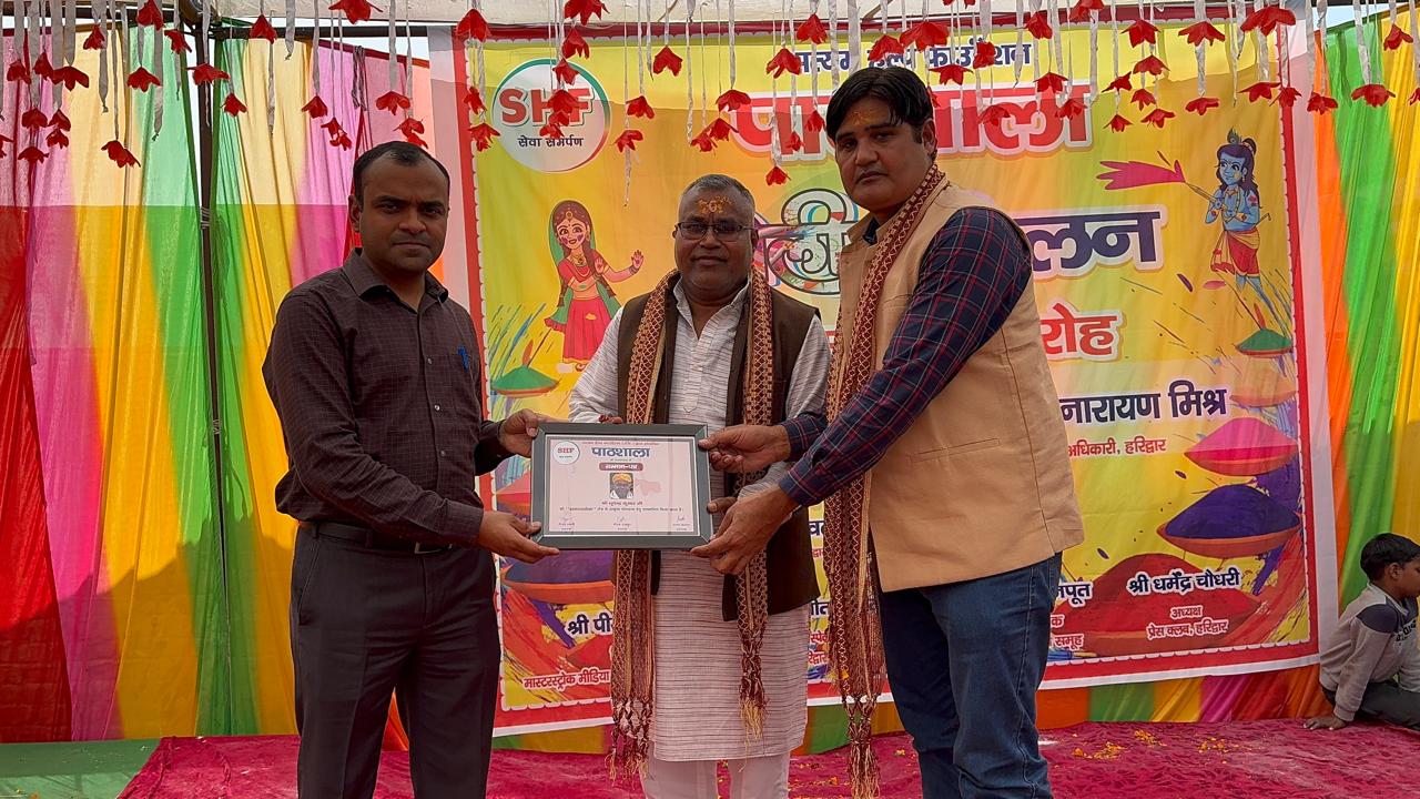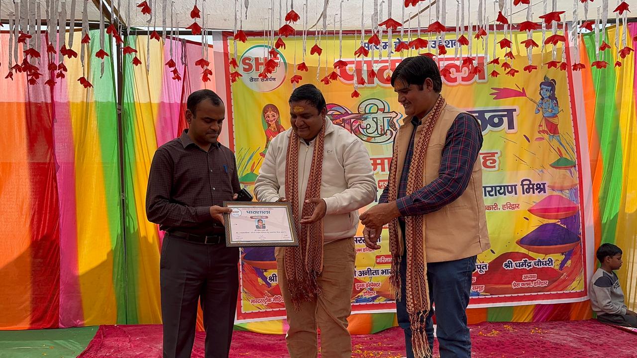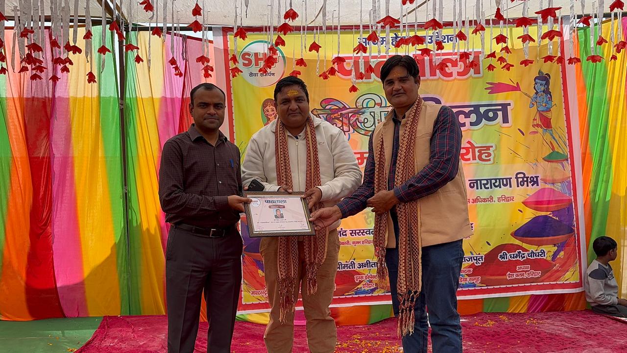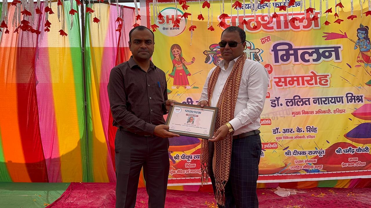 हरिद्वार। सत्यम हेल्प फाउंडेशन की ओर से अजीतपुर स्थित पाठशाला परिवार द्वारा शनिवार को भव्य होली मिलन एवं सम्मान समारोह का आयोजन किया गया। कार्यक्रम में हरिद्वार के जिलाधिकारी मयूर दीक्षित, मुख्य चिकित्सा अधिकारी डॉ. आरके सिंह, अपर मेला अधिकारी दयानंद सरस्वती, मास्टर स्टॉक मीडिया के संपादक पियूष त्यागी समेत कई गणमान्य अतिथि उपस्थित रहे।