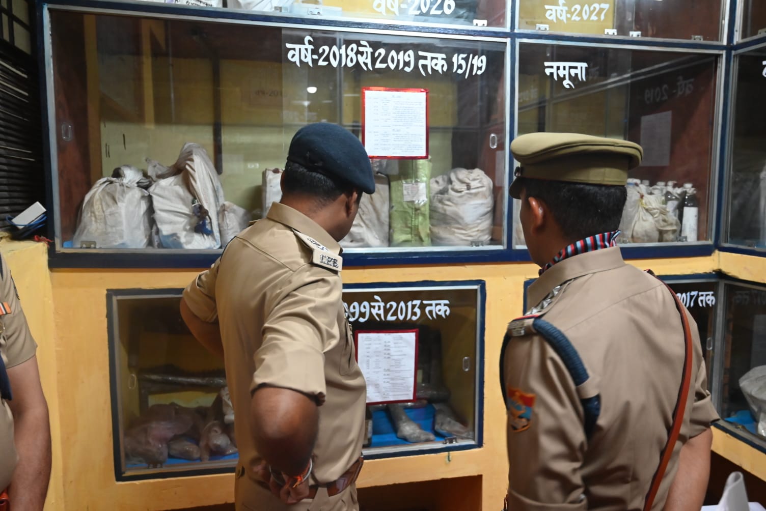 मालखाना का निरीक्षण करते हुए महोदय द्वारा माल मुकदमाती को वर्षवार व क्रमवार सही तरीके से रखने, आबकारी अधिनियम से जुड़े माल मुकदमाती के अल्पीकरण, निर्णित माल मुकदमाती के सप्ताह भर में निस्तारण एवं लावारिस वाहनों की नीलामी के लिए पत्राचार हेतु मालखाना मोहर्रिर को निर्देशत करते हुए थाना प्रभारी को पर्यवेक्षण की जिम्मेदारी दी।