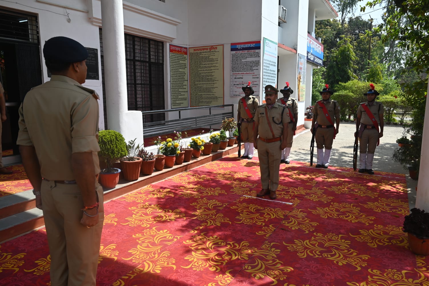 वरिष्ठ पुलिस अधिक्षक हरिद्वार नवनीत सिंह आज वार्षिक निरीक्षण के लिए थाना बुग्गावाला पहुंचे। उनके थाना आगमन पर मौजूद क्षेत्राधिकारी बुग्गावाला सहित अन्य पुलिस अधिकारियों द्वारा उनका स्वागत किया गया तथा सेरिमोनियल ड्रेस में सजी गार्द द्वारा सलामी दी गई।