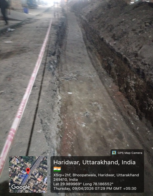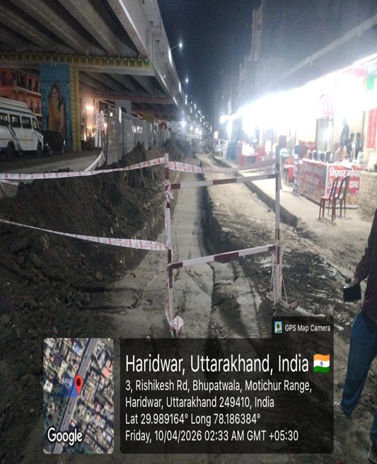 हरिद्वार। हरिद्वार शहर के अंतर्गत सीवरेज कार्य हेतु खोदी गई सड़कों से क्षेत्रीय जनता,व्यापारियों को हो रही परेशानी के दृष्टिगत जिलाधिकारी मयूर दीक्षित ने विगत दिन 01 अप्रैल 2026 को संबंधित अधिकारियों के साथ बैठक आहूत कर चल रहे निर्माण कार्यों को त्वरित गति से पूर्ण करने के निर्देश संबंधित अधिकारियों एवं कांट्रेक्टर को दिए गए थे। जिलाधिकारी ने यह भी निर्देश दिए है की चारधाम यात्रा शुरू होने पूर्व ही जो भी सीवरेज कार्य हेतु सड़के खोदी गयी है उन सड़कों का हर हाल में मरम्मत कार्य पूर्ण करने के निर्देश दिए गये है जिसके अनुपालन में कार्य तीव्रगति से किए जा रहे है।