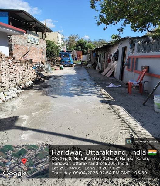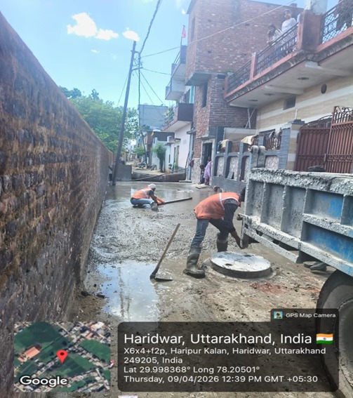 परियोजना प्रबंधक निर्माण एवं अनुरक्षण इकाई गंगा उत्तराखंड पेयजल निगम मिनाक्षी मित्तल ने अवगत कराया है कि जिलाधिकारी के निर्देशों के अनुपालन में केएफडब्लयू वित्त पोषित हरिद्वार जलोत्सारण योजना पैकेज 01 एवं पैकेज 02 के अंतर्गत कराए जा रहे सड़क पुनर्निर्माण संबंधी कार्य जिसके तहत 08 अप्रैल एवं 09 अप्रैल तक किए गए निर्माण कार्यों का विवरण निम्नवत है जिसमें- पैकेज 01 में प्रेम विहार कॉलोनी सीसी रोड निर्माण कार्य 34 मीटर, नियर भागीरथी विद्यालय सीसी रोड निर्माण कार्य 18.4 मीटर, गली नंबर 06 सीसी रोड 43.2 मीटर,रानी गली सिसी रोड 18 मीटर,जिसमें कुल 113.07 मीटर कार्य कार्य पूर्ण कर लिया गया है। तथा पैकेज 02 के अंतर्गत शिवानीपुरम में सीसी रोड निर्माण कार्य 37 मीटर, द्वारका विहार(पेवर ब्लॉक) 38 मीटर, द्वारका विहार सीसी रोड का कार्य 34 मीटर, गणपति धाम फेस 3 सीसी रोड 26 मीटर,राज विहार फेस 2 पेवर ब्लॉक 34 मीटर ,जिसमें कुल 169 मीटर निर्माण कार्य पूर्ण कर लिया गया है ।