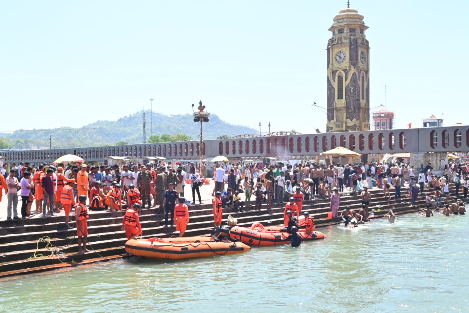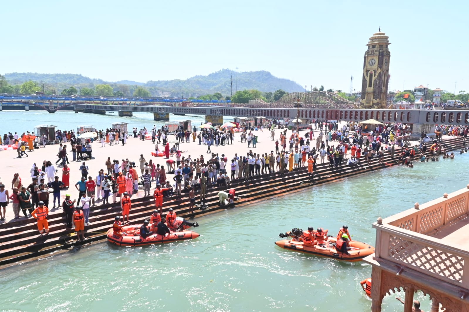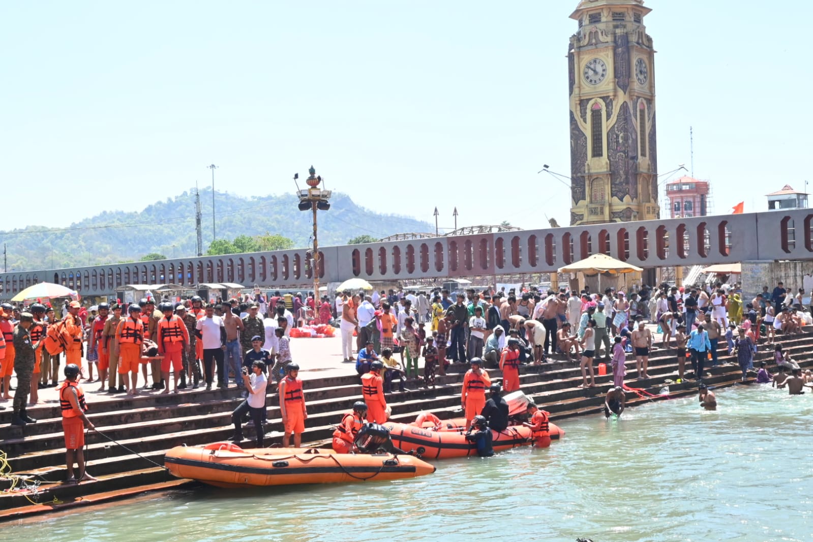 दूसरा परिदृश्य शिव पुल हरिद्वार में जल स्तर बढ़ने के कारण भगदड़ की स्थिति पैदा हुई एवं 14 लोगो गंगा में बहा गए थे उनका जल पुलिस द्वारा सफल रेस्क्यू किया गया।जिसमें 05 लोग मामूली घायलों का प्राथमिक उपचार किया गए एवं 09 लोगों की रिलीफ सेंटर भेजा गया।