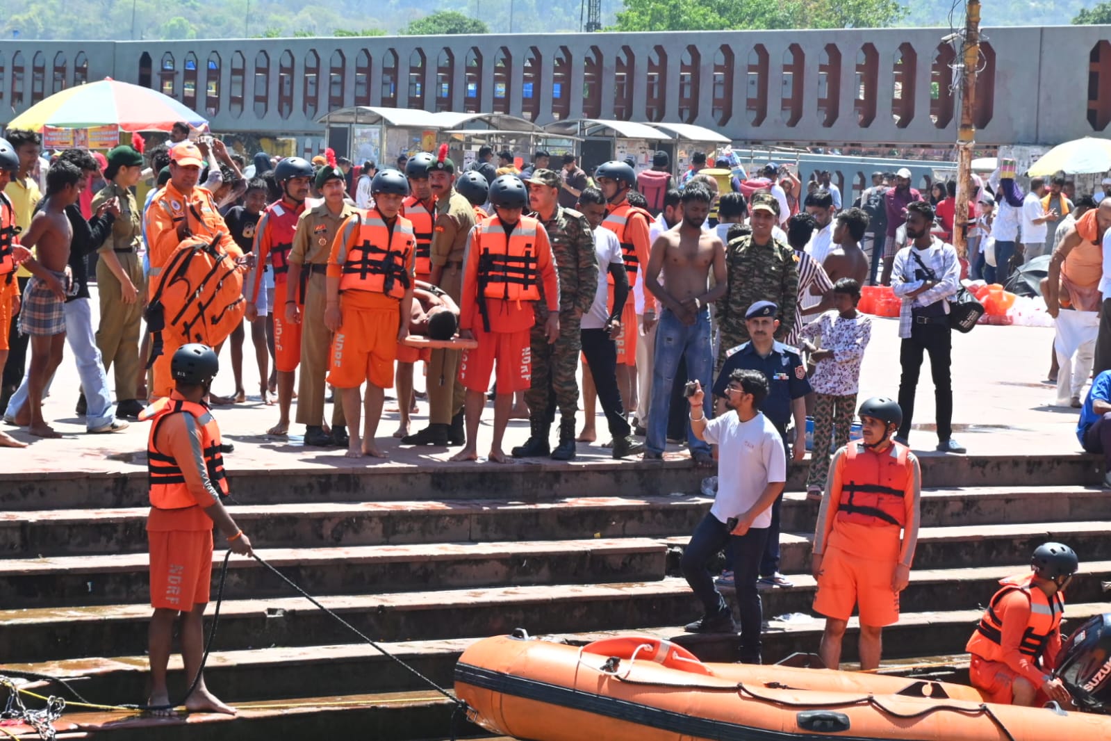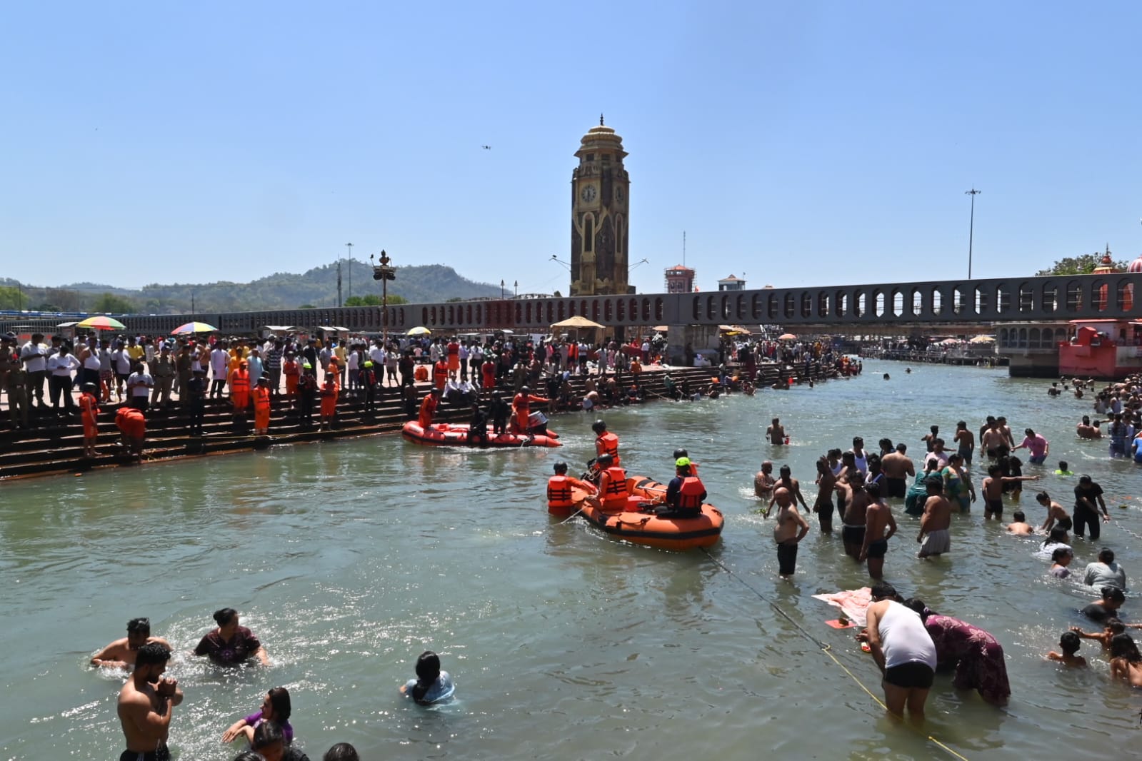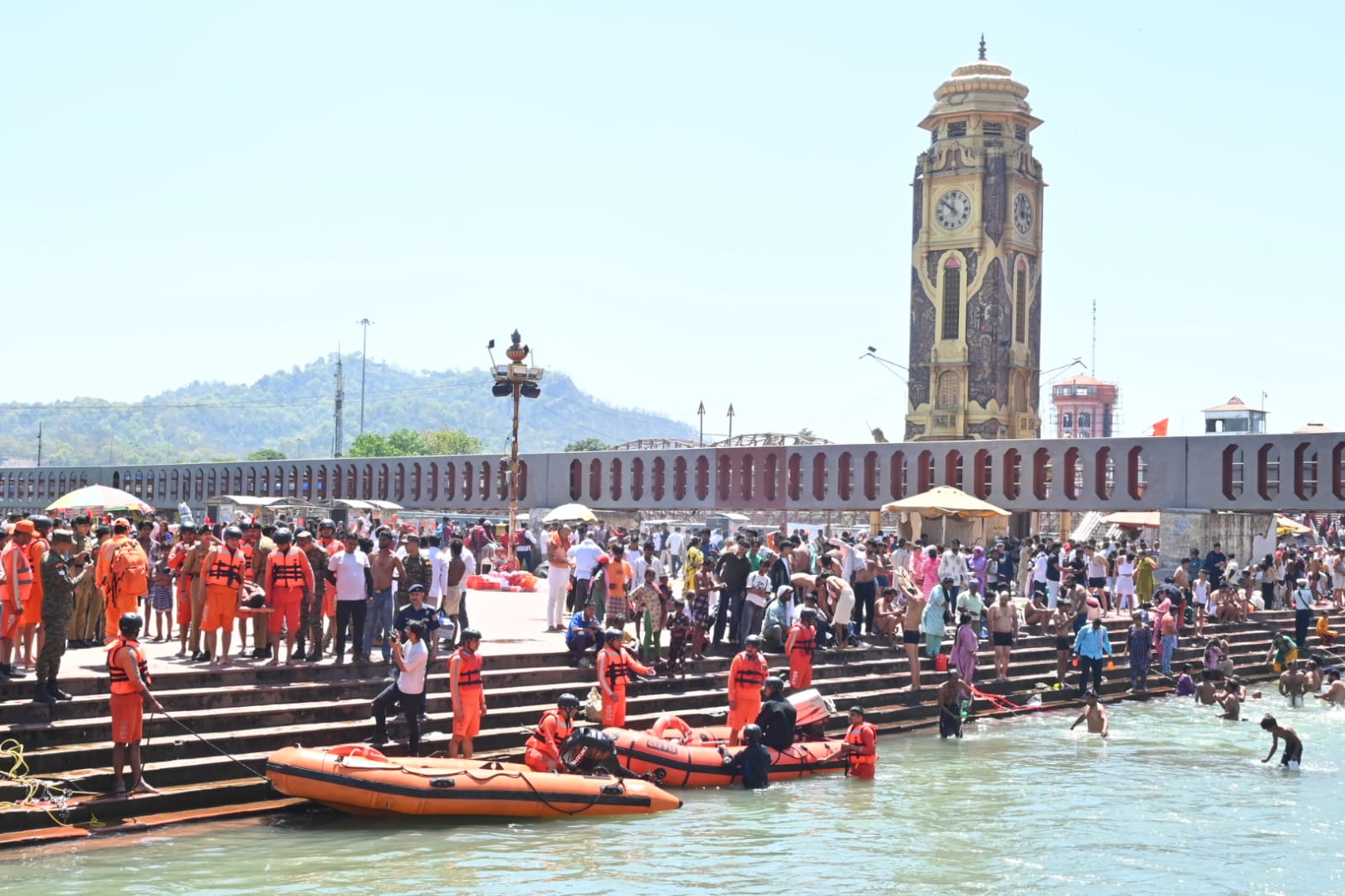 दूसरा परिदृश्य शिव पुल हरिद्वार में जल स्तर बढ़ने के कारण भगदड़ की स्थिति पैदा हुई एवं 14 लोगो गंगा में बहा गए थे उनका जल पुलिस द्वारा सफल रेस्क्यू किया गया।जिसमें 05 लोग मामूली घायलों का प्राथमिक उपचार किया गए एवं 09 लोगों की रिलीफ सेंटर भेजा गया।