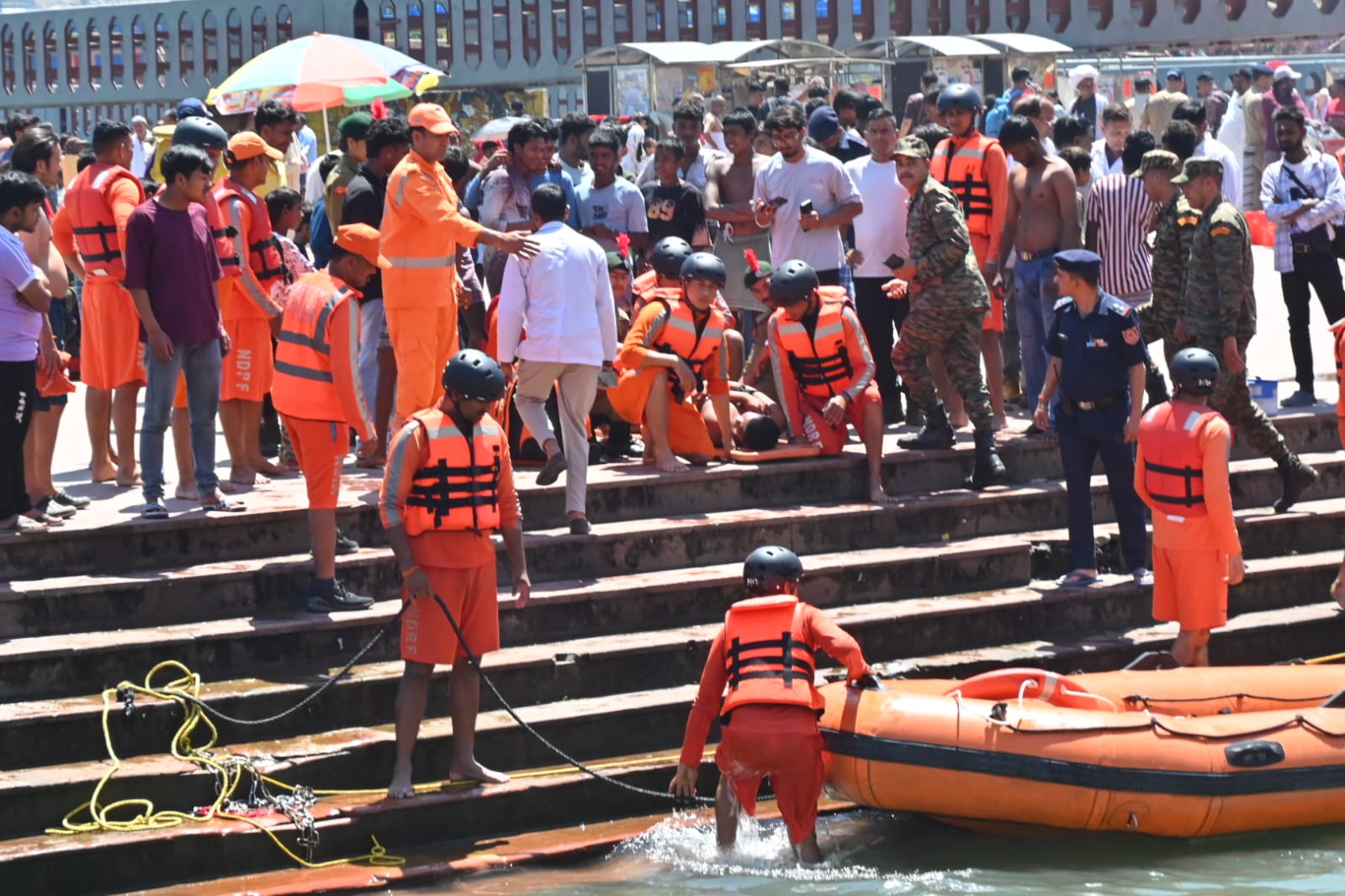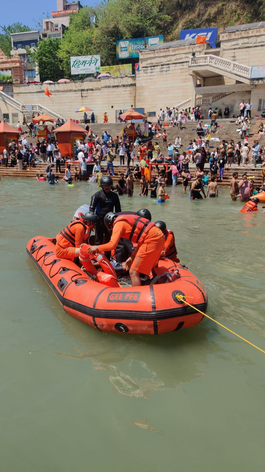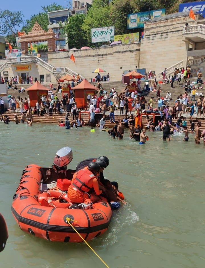 विष्णु घाट हरिद्वार में भारी वर्षा के कारण टिहरी बांध बड़वार अत्यधिक जल छोड़ने से गंगा का जल स्तर में अत्यधिक वृद्धि हो गई,जिस कारण घाटों पर स्नान कर रहे श्रद्धालुओं में अफरातफरी मच गई तथा गंगा में 04 व्यक्तियों की बहाने की सूचना प्राप्त हुई।जिसमें टीम द्वारा 02 व्यक्तियों को रेस्क्यू कर लिया गया,जिसमें से 01 मामूली घायल व्यक्ति को प्राथमिक उपचार कर घर भेज दिया गया तथा 01 व्यक्ति को रिलीफ सेंटर भेजा गया।