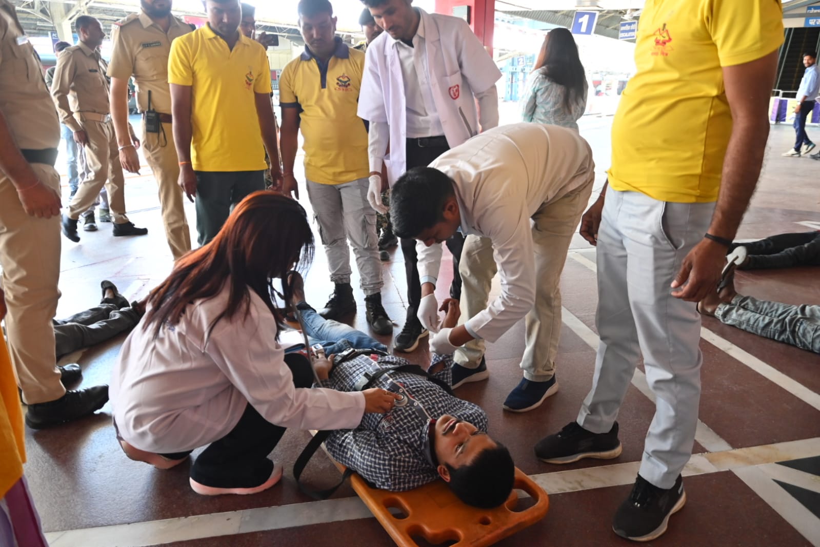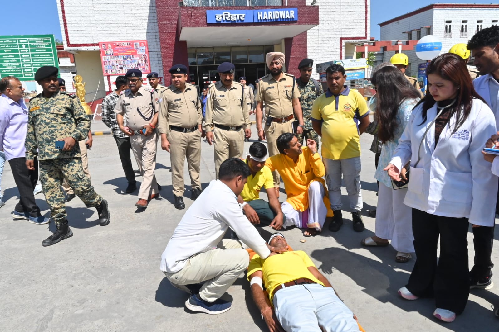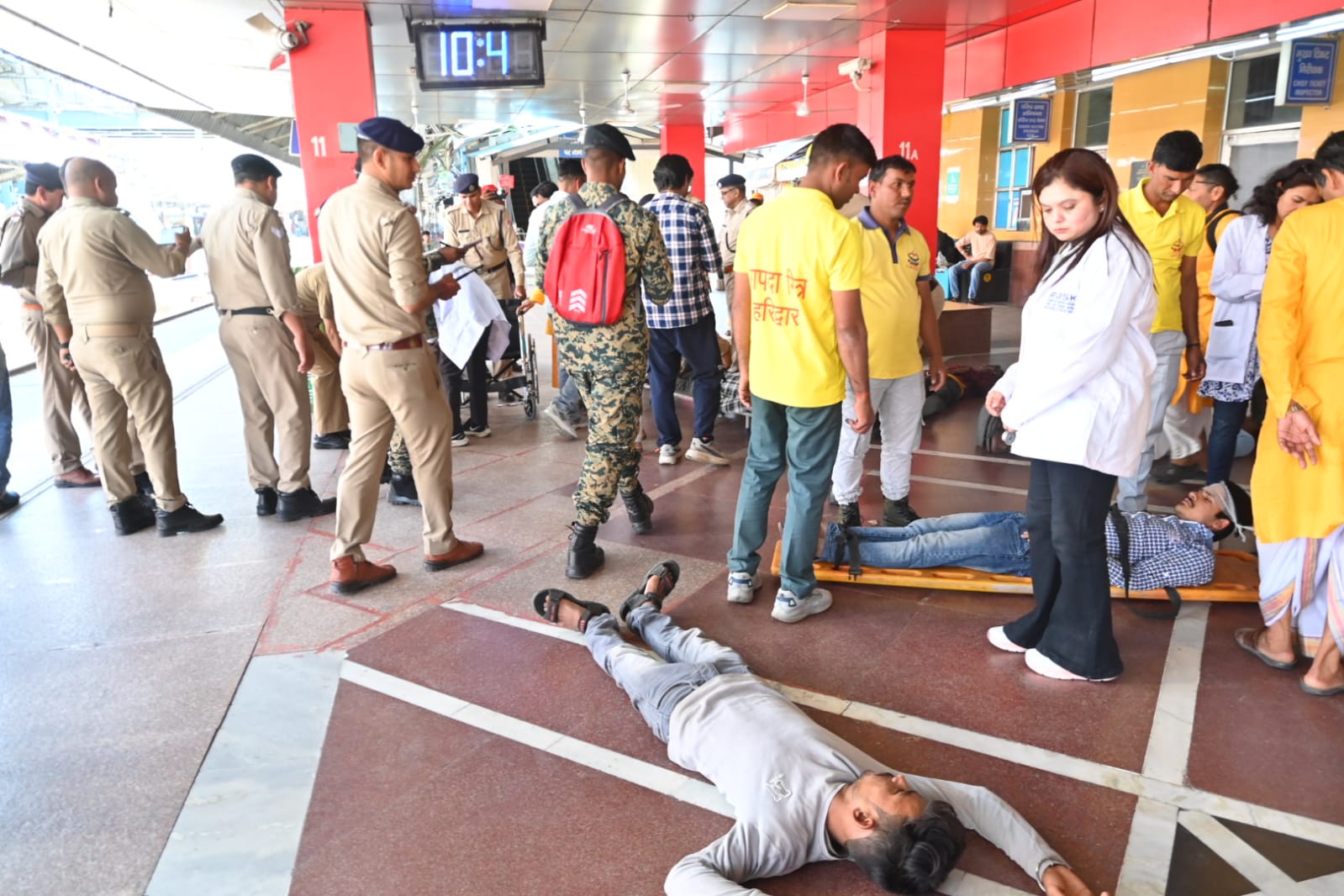 तीसरा परिदृश्य हरिद्वार रेलवे स्टेशन में ट्रेन लेट आने के से स्टेशन पर अचानक श्रद्धालुओं की भीड़ बढ़न के कारण भगदड़ मच गई,जिसमें कई 06 श्रद्धालु घायल हो गए। जिसमें 04 गंभील घायलों को अस्पताल भेजा गया एवं 02 लोगों को रिलीफ सेंटर भेजा गया।