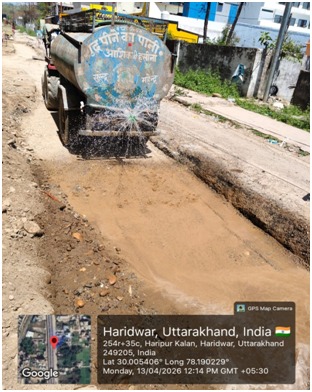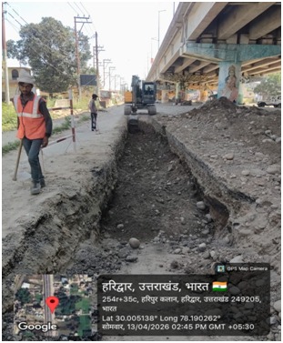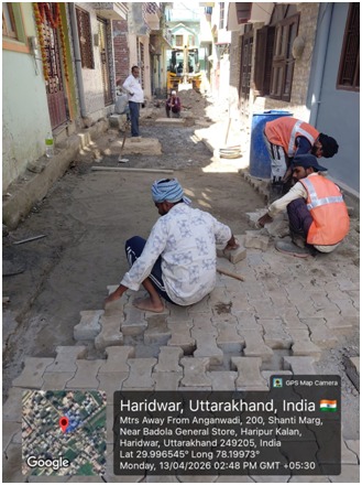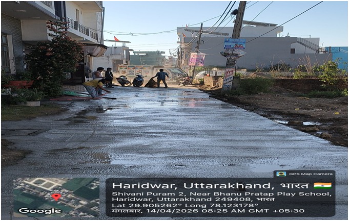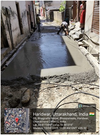 परियोजना प्रबंधक निर्माण एवं अनुरक्षण इकाई गंगा उत्तराखंड पेयजल निगम मिनाक्षी मित्तल ने अवगत कराया है कि जिलाधिकारी के निर्देशों के अनुपालन में केएफडब्लयू वित्त पोषित हरिद्वार जलोत्सारण योजना पैकेज 01 एवं पैकेज 02 के अंतर्गत कराए जा रहे सड़क पुनर्निर्माण संबंधी कार्य जिसके तहत 13 अप्रैल को किए गए निर्माण कार्यों का विवरण निम्नवत है जिसमें- पैकेज 01 में मुखिया गली सीसी रोड निर्माण कार्य 10 मीटर,शांति मार्ग (टाइल्स रोड) 8 मीटर, ऋषिकुल ( बी टी रोड) द्वारा पी डब्लू डी 200 मीटर कार्य पूर्ण कर लिया गया है तथा कुल 218 मीटर कार्य पूर्ण किया गया है। तथा पैकेज 02 के अंतर्गत लोकसेवा आयोग सीसी रोड 129 मीटर, शिवानीपुरम सीसी रोड 40 मीटर, गणपतिधाम फेस 3 सीसी रोड 50 मीटर कार्य पूर्ण करते हुए कुल 219 मीटर निर्माण कार्य पूर्ण कर लिया गया है ।