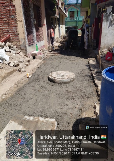 परियोजना प्रबंधक निर्माण एवं अनुरक्षण इकाई गंगा उत्तराखंड पेयजल निगम मिनाक्षी मित्तल ने अवगत कराया है कि जिलाधिकारी के निर्देशों के अनुपालन में केएफडब्लयू वित्त पोषित हरिद्वार जलोत्सारण योजना पैकेज 01 एवं पैकेज 02 के अंतर्गत कराए जा रहे सड़क पुनर्निर्माण संबंधी कार्य जिसके तहत 14 अप्रैल को किए गए निर्माण कार्यों का विवरण निम्नवत है जिसमें- पैकेज 01 में मुखिया गली सीसी रोड निर्माण कार्य 25 मीटर,शांति मार्ग (टाइल्स रोड) 08 मीटर,इंटर कॉलेज रोड सीसी रोड 25 मीटर,प्रेम विहार चौक सीसी रोड 30 मीटर, साईं गली सीसी रोड 40 मीटर,पीपल वाली गली सीसी रोड कार्य पूर्ण कर लिया गया है तथा कुल 148 मीटर कार्य पूर्ण किया गया है। तथा पैकेज 02 के अंतर्गत लोकसेवा आयोग सीसी रोड 102 मीटर, गणपति विहार सीसी रोड 71 मीटर, गणपतिधाम फेस 3 सीसी रोड 24 मीटर, गणपतिधाम फेस 3 पावर ब्लॉक 20 मीटर,राज विहार फेस 2 पावर ब्लॉक 18 मीटर, शिवपुराम कॉलोनी सीसी रोड 38 मीटर कार्य पूर्ण करते हुए कुल 273 मीटर निर्माण कार्य पूर्ण कर लिया गया है ।