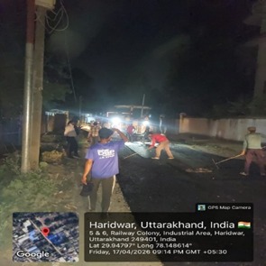 परियोजना प्रबंधक निर्माण एवं अनुरक्षण इकाई गंगा उत्तराखंड पेयजल निगम मिनाक्षी मित्तल ने अवगत कराया है कि जिलाधिकारी के निर्देशों के अनुपालन में केएफडब्लयू वित्त पोषित हरिद्वार जलोत्सारण योजना पैकेज 01 एवं पैकेज 02 के अंतर्गत कराए जा रहे सड़क पुनर्निर्माण संबंधी कार्य जिसके तहत 17 अप्रैल को किए गए निर्माण कार्यों का विवरण निम्नवत है जिसमें- पैकेज 01 में गली नंबर 06 सीसी रोड 4.5 मीटर, बिट्यूमिनस मकादम (bituminous macadam ) वर्क बी टी रोड 200 मीटर, पीपल वाली गली सीसी रोड 20 मीटर कार्य पूर्ण कर लिया गया है तथा कुल 224.50 मीटर कार्य पूर्ण कर लिया गया है। तथा पैकेज 02 के अंतर्गत द्वारका विहार पावर ब्लॉक 24 मीटर, गणपति विहार सीसी रोड 20 मीटर,राजा गार्डन पावर ब्लॉक 37 मीटर, गणपतिधाम फेस 3 पावर ब्लॉक 30 मीटर कार्य पूर्ण करते हुए कुल 111 मीटर निर्माण कार्य पूर्ण कर लिया गया है ।