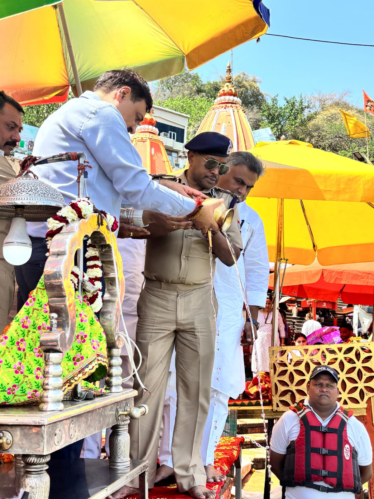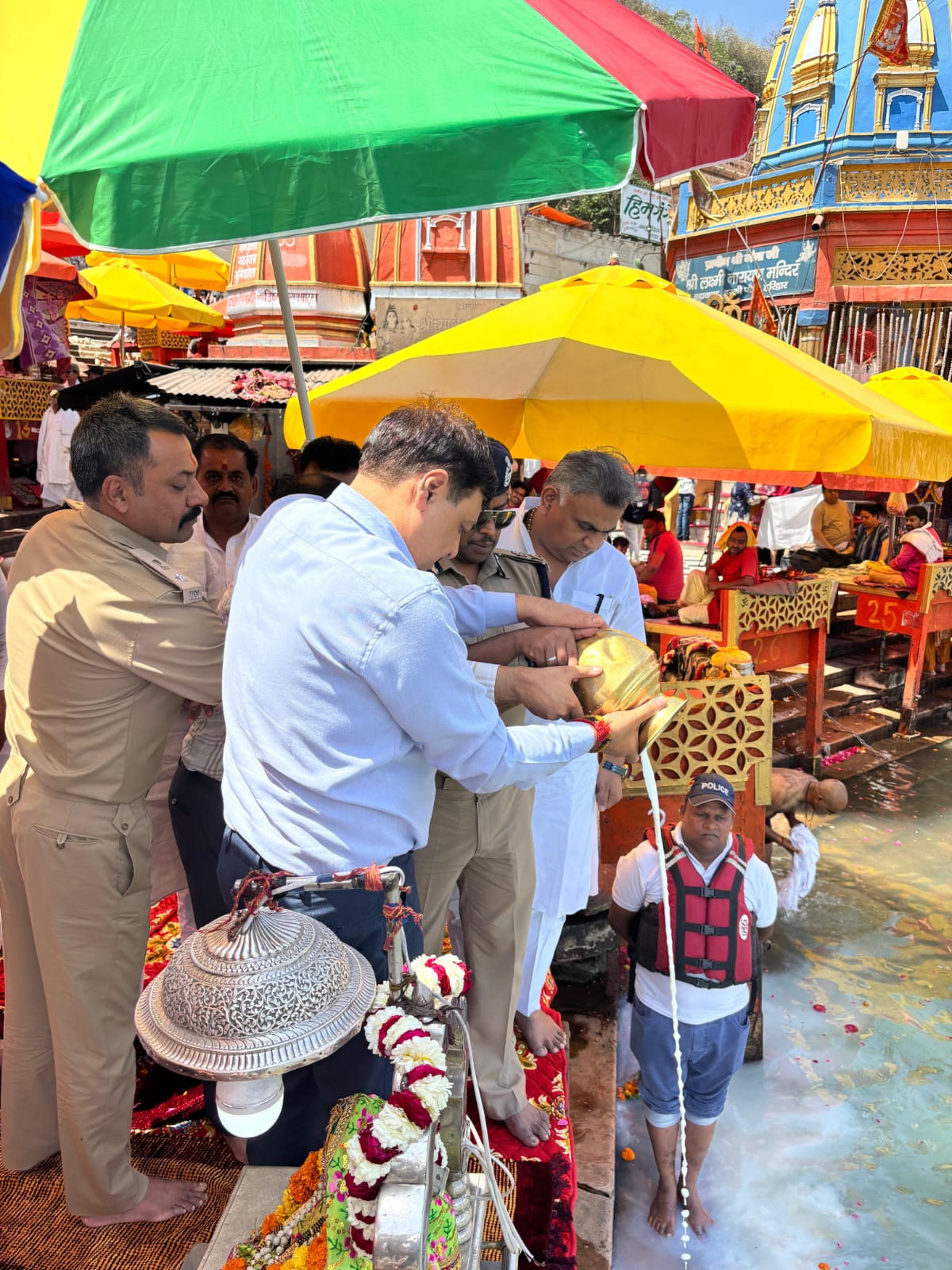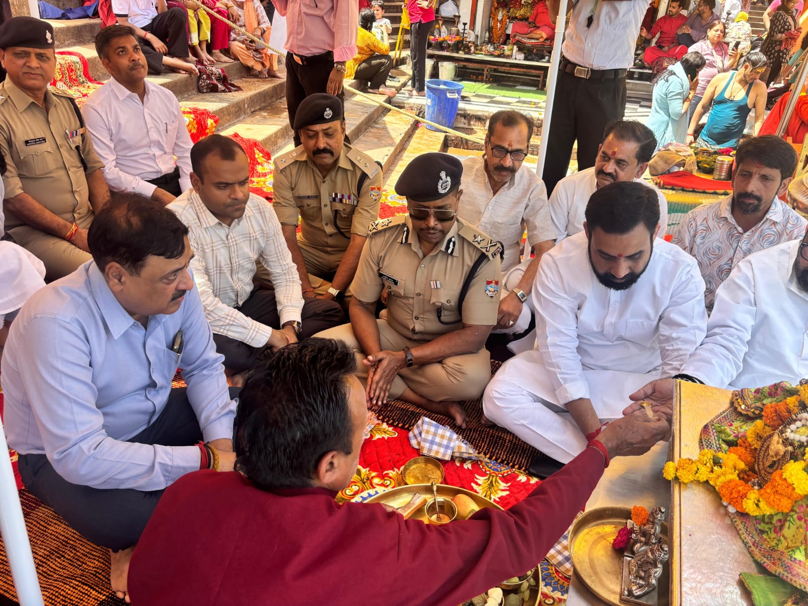 चारधाम यात्रा को निर्विघ्न,सुरक्षित एवं सकुशल ढंग से सम्पन्न कराने के लिए आज हर की पैड़ी पर आयुक्त गढ़वाल मण्डल विनय शंकर पांडे एवं आईजी गढ़वाल राजीव स्वरूप ने मां गंगा की पूजा अर्चना कर कुशल यात्रा संचालन की प्रार्थना