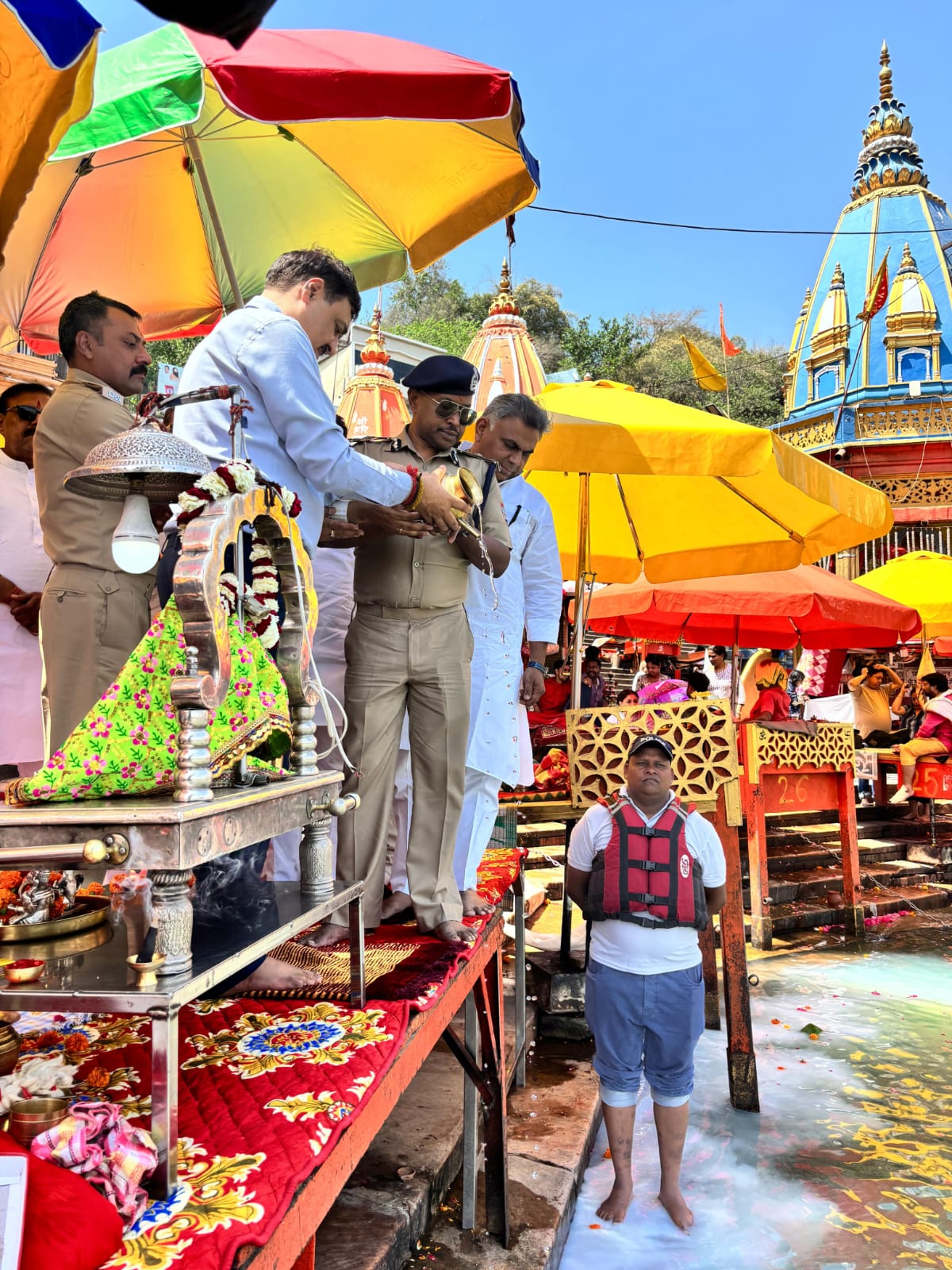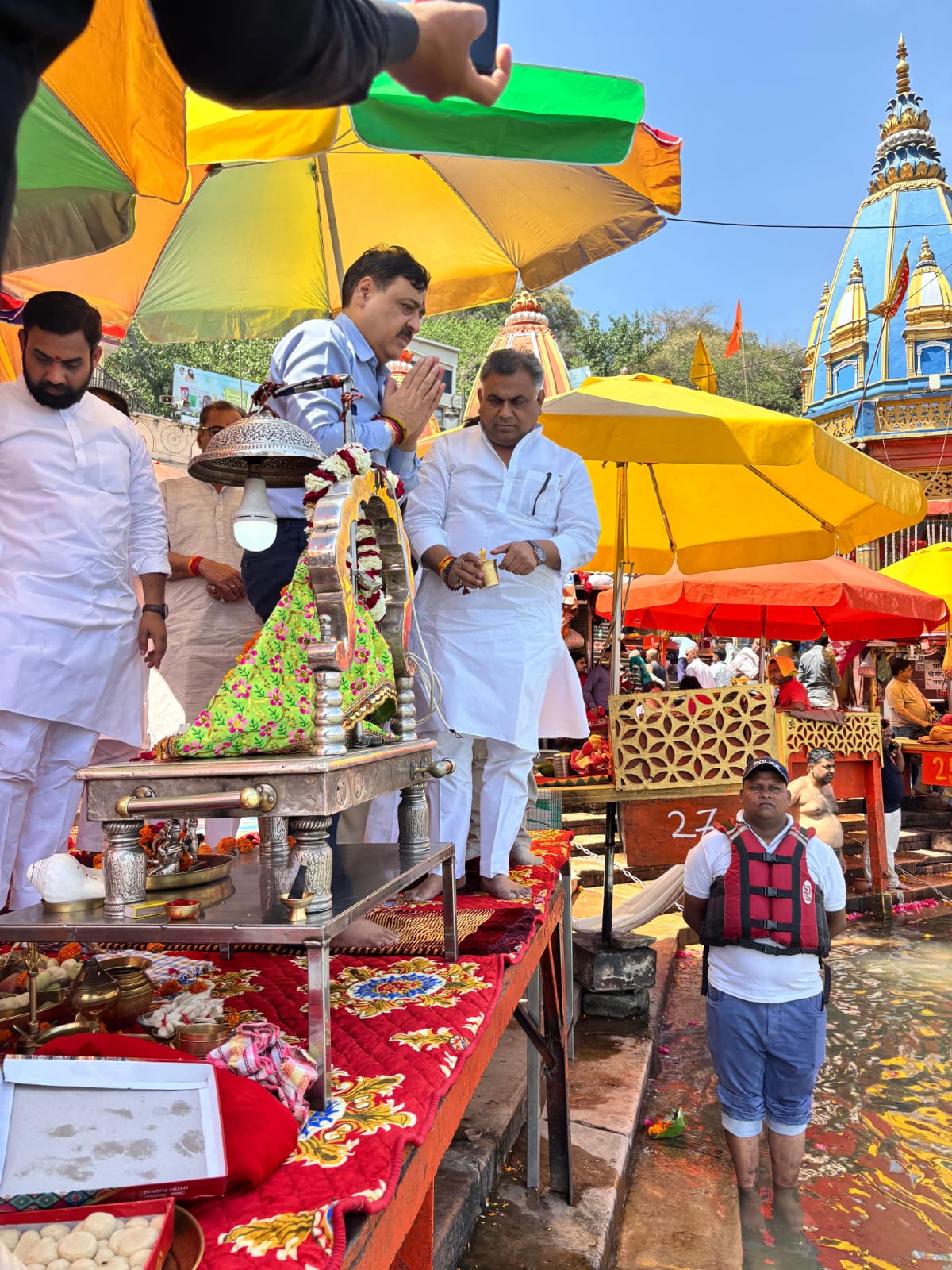 हरिद्वार।चारधाम यात्रा शुरू होने से एक दिन पूर्व आयुक्त गढ़वाल मंडल विनय शंकर पांडे,आईजी गढ़वाल राजीव स्वरूप, जिलाधिकारी मयूर दीक्षित एवं वरिष्ठ पुलिस अधीक्षक नवनीत सिंह भुल्लर ने हर की पैड़ी में मां गंगा की पूजा अर्चना कर चार धाम यात्रा को निर्विघ्न,सुरक्षित एवं कुशलता पूर्वक संपन्न कराने के लिए मां गंगा से प्रार्थना की।