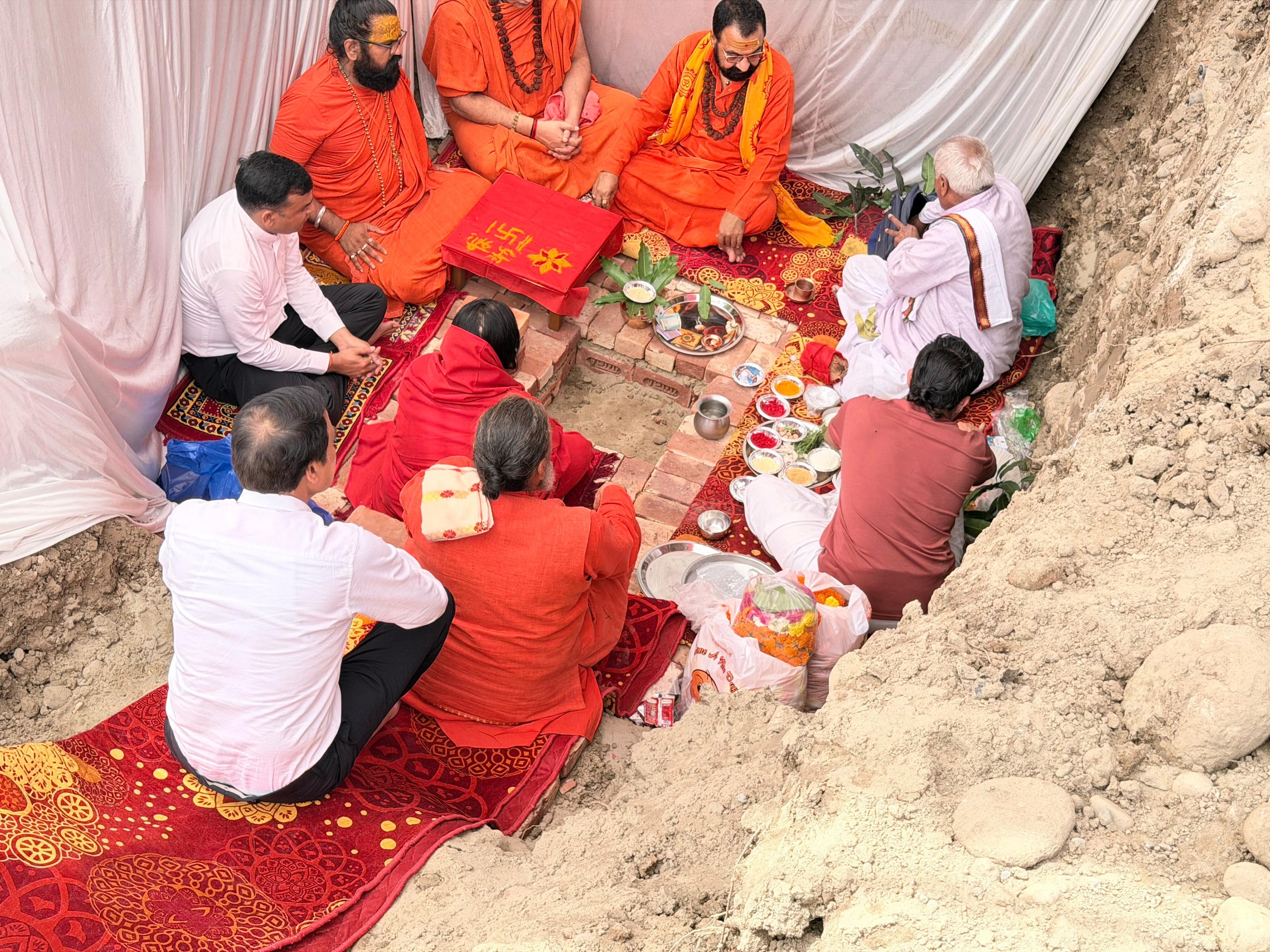 भूमि पूजन कार्यक्रम में निर्वाण पीठाधीश्वर आचार्य महामंडलेश्वर स्वामी विशोकानंद भारती जी महाराज, महानिर्वाणी अखाड़ा के सचिव श्री रवींद्र पुरी जी महाराज सहित कई अखाड़ों के महामंडलेश्वर एवं संत-महात्मा मौजूद रहे। कार्यक्रम में कैबिनेट मंत्री श्री मदन कौशिक भी शामिल हुए।
