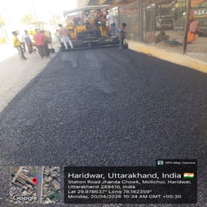 परियोजना प्रबंधक निर्माण एवं अनुरक्षण इकाई गंगा उत्तराखंड पेयजल निगम मिनाक्षी मित्तल ने अवगत कराया है कि जिलाधिकारी के निर्देशों के अनुपालन में केएफडब्लयू वित्त पोषित हरिद्वार जलोत्सारण योजना पैकेज 01 एवं पैकेज 02 के अंतर्गत कराए जा रहे सड़क पुनर्निर्माण संबंधी कार्य जिसके तहत 20 अप्रैल को किए गए निर्माण कार्यों का विवरण निम्नवत है जिसमें- पैकेज 01 में  बिटुमिनस रोड़ वर्क (इंडस्ट्रीयल एरिया) 575 मीटर, बिटुमिनस रोड़ वर्क दुधाधारी चौक 318 मीटर, इंटर कॉलेज रोड सीसी रोड 32 मीटर कार्य पूर्ण कर लिया गया है तथा कुल 925 मीटर कार्य पूर्ण कर लिया गया है। तथा पैकेज 02 के अंतर्गत  द्वारका विहार पावर ब्लॉक 19 मीटर, मोहन इंक्लेव सीसी रोड 15 मीटर,शिवापुरम कॉलोनी सीसी रॉड 45 मीटर, गणपति विहार सीसी रोड 60 मीटर, आशुतोष विहार पावर ब्लॉक 10 मीटर कार्य पूर्ण करते हुए कुल 149 मीटर निर्माण कार्य पूर्ण कर लिया गया है ।